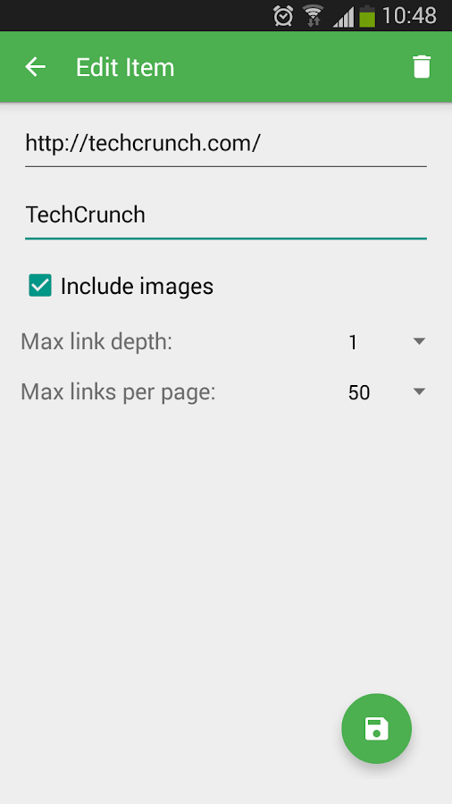 هذا التطبيق يمكنك عزيزي القاريء من إختيار الموقع أو المواقع التي تريد تصفحها في ما بعد وذلك عبر الضغط على زر "+" ثم تقوم بإدخال عنوان الموقع ثم إختيار عدد الصفحات والروابط التي ترغب في حفظها ثم تنقر على زر حفظ.